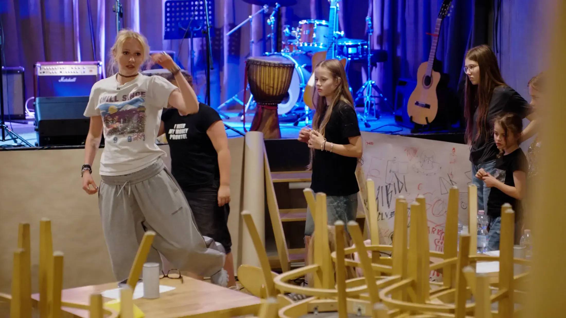 Fünf Monate lang traf sich eine deutsch-polnische Jugendgruppe im CTC zu verschiedenen Workshops. Die Jugendlichen beschäftigten sich mit Tanz, Theater, Gesang, dem Erlernen von Musikinstrumenten, dem Filmemachen sowie mit Malerei und Bastelarbeiten. Die Workshop-Reihe knüpfte an die Arbeit an, die während der Winterfreizeit begonnen hatte – in nur einer Woche war damals das Musical „Der Verlorene Sohn / Syn Marnotrawny“ entstanden. Das Ergebnis der gemeinsamen Arbeit waren zwei Aufführungen: die erste fand in der Kirche in Brüssow am 18. Mai 2025 statt, die zweite am 10. Juli 2025 im Jazzment-Club in Stettin. Nachfolgend zeigen wir eine Fotodokumentation beider Veranstaltungen.